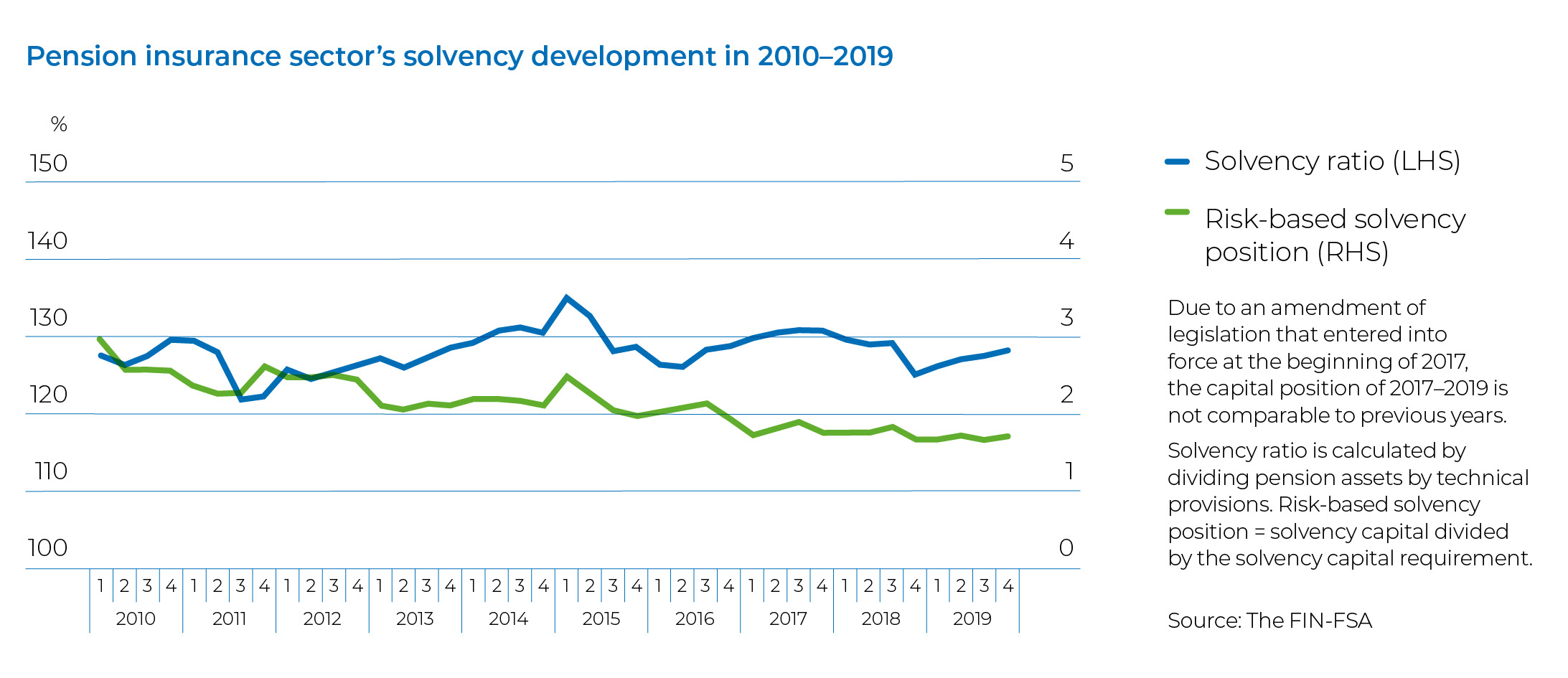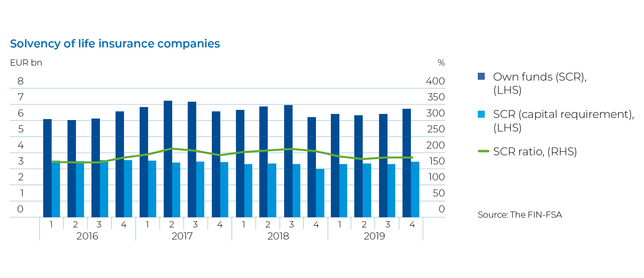 The solvency ratio of the life insurance sector contracted in the review year but remained at a good level. The deterioration mainly reflected a rise in the solvency capital requirement. An addition of Tier 2 capital, however, reduced the negative impact and therefore the reduction in the solvency ratio remained smaller than expected.