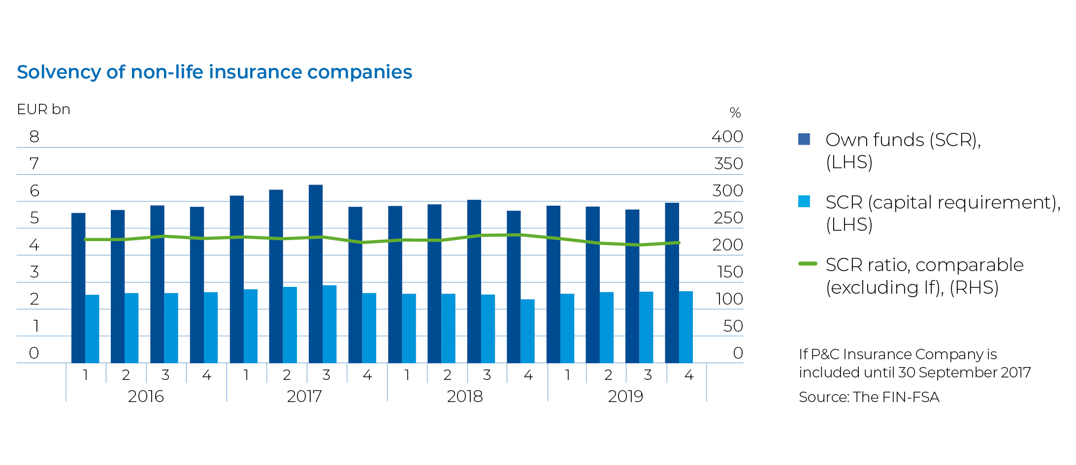 Insurance companies’ income mainly stemmed from investment income. In contrast, no margin was accrued from the insurance business. Profitability was undermined by unfavourable claims development. In addition, profitability weakened in the second half of the year as companies increased the prudence of technical provisions in accounting by reducing their applicable discount rates.