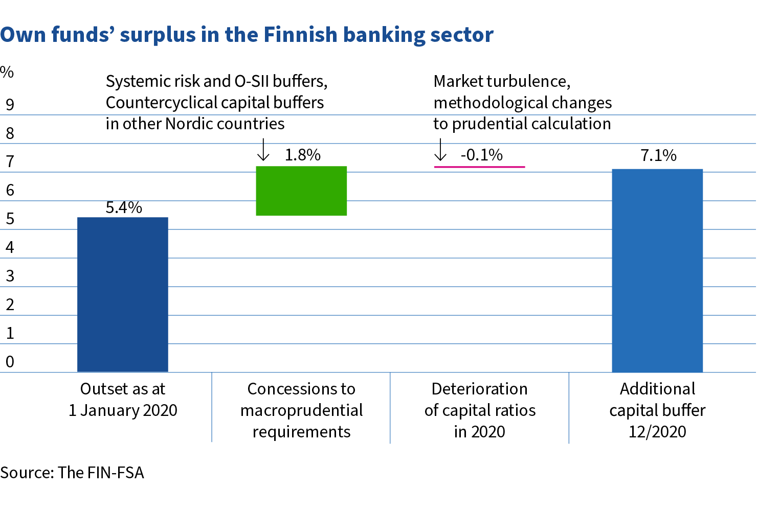The coronavirus pandemic and the consequent economic recession affected the operating environment for Finnish banks. Despite the elevated uncertainty in the economy, changes in the capital ratios of the Finnish banking sector remained minor, and CET1 capital adequacy ultimately improved a little. The capital ratios of the banking sector remained stronger than the European average. In the spring, Nordic macroprudential authorities reduced the additional capital requirements, which improved Finnish banks’ possibilities to grant credit and withstand losses.