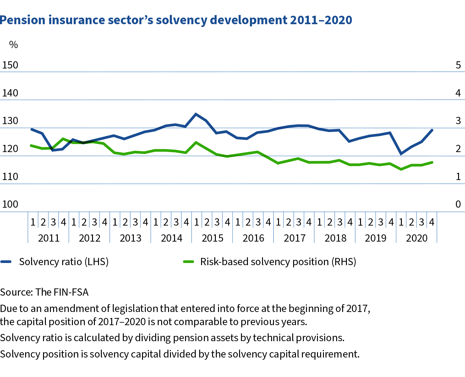 Year 2020 was very bipolar in the employee pension sector. In the first quarter, the solvency of the employee pension sector weakened significantly as asset values sunk in the sell-off caused by the coronavirus pandemic. In mid-March, the FIN-FSA filed a notification with the Ministry of Social Affairs and Health on exceptional circumstances in the financial markets, as the average solvency of employee pension institutions was at risk of declining rapidly and significantly.