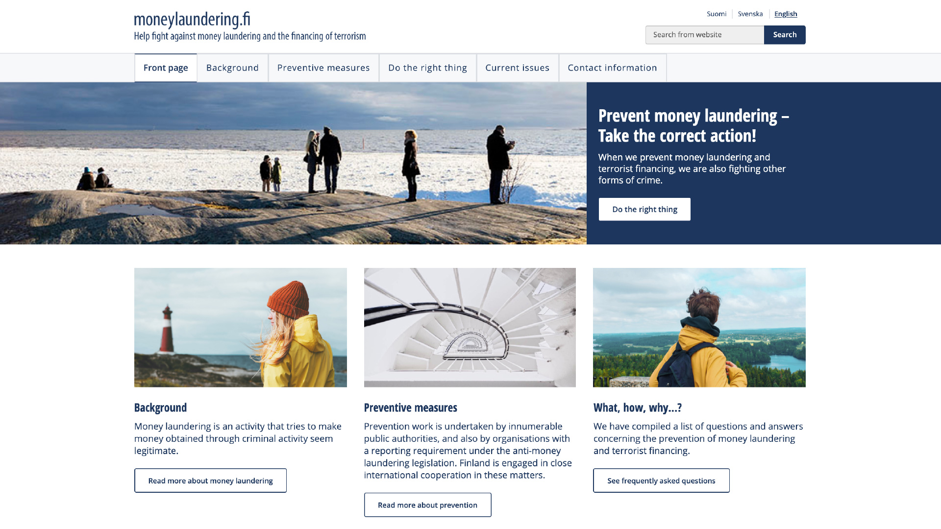 Several domestic authorities and organisations published a common moneylaundering.fi website in December. The FIN-FSA participated in the production of the website and will continue to contribute closely to its maintenance and development. The website is located at www.moneylaundering.fi.