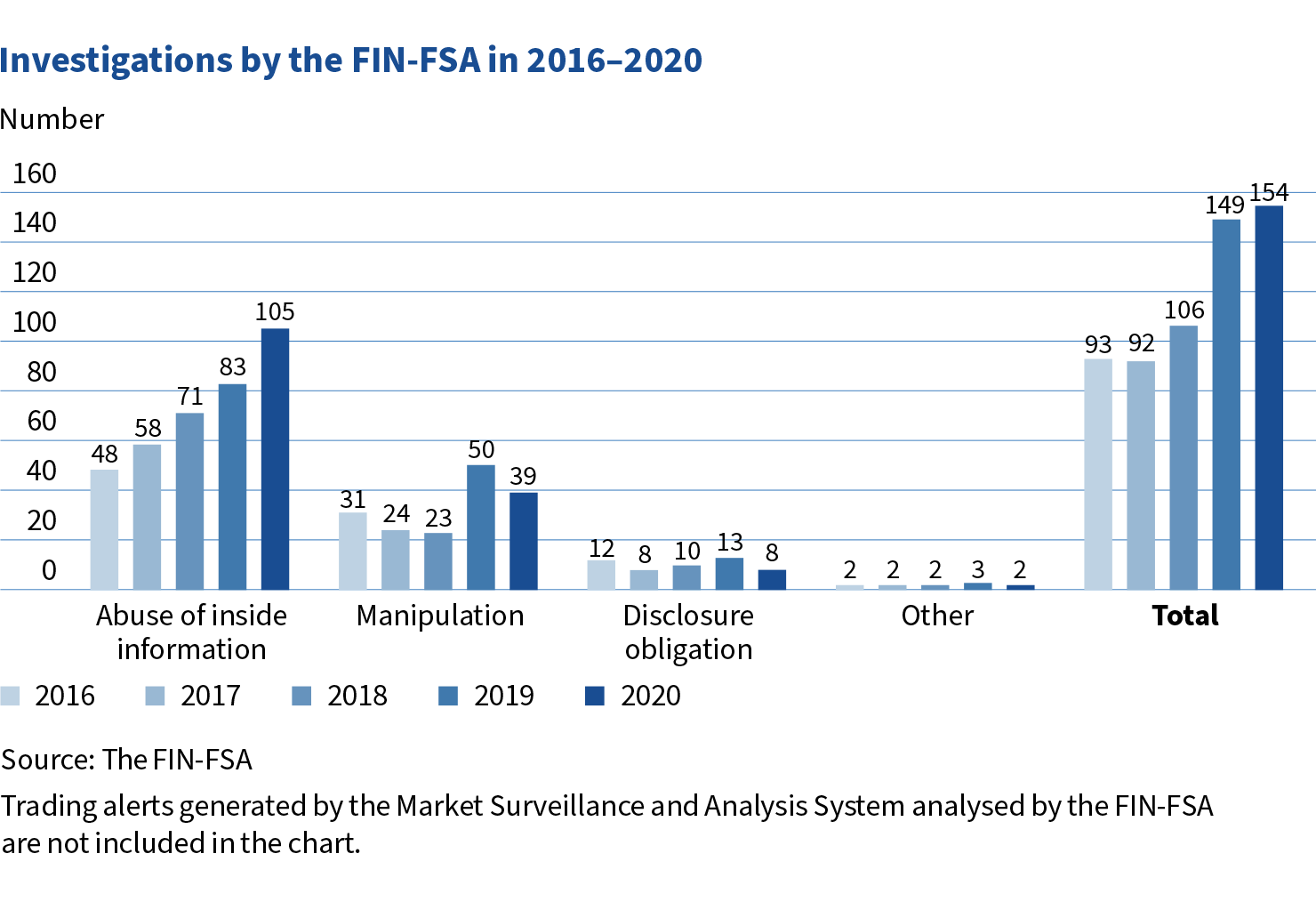 Throughout 2020, the FIN-FSA had the Market Surveillance and Analysis System in full-time use, improving the efficiency of detecting potential market manipulation and abuse of inside information. The system was adopted gradually in the previous year. Among other things, the system is capable of detecting suspicious activity in a large volume of trading data, potentially including hundreds of millions of transactions and billions of dealing orders annually – a number which is impossible to review manually.