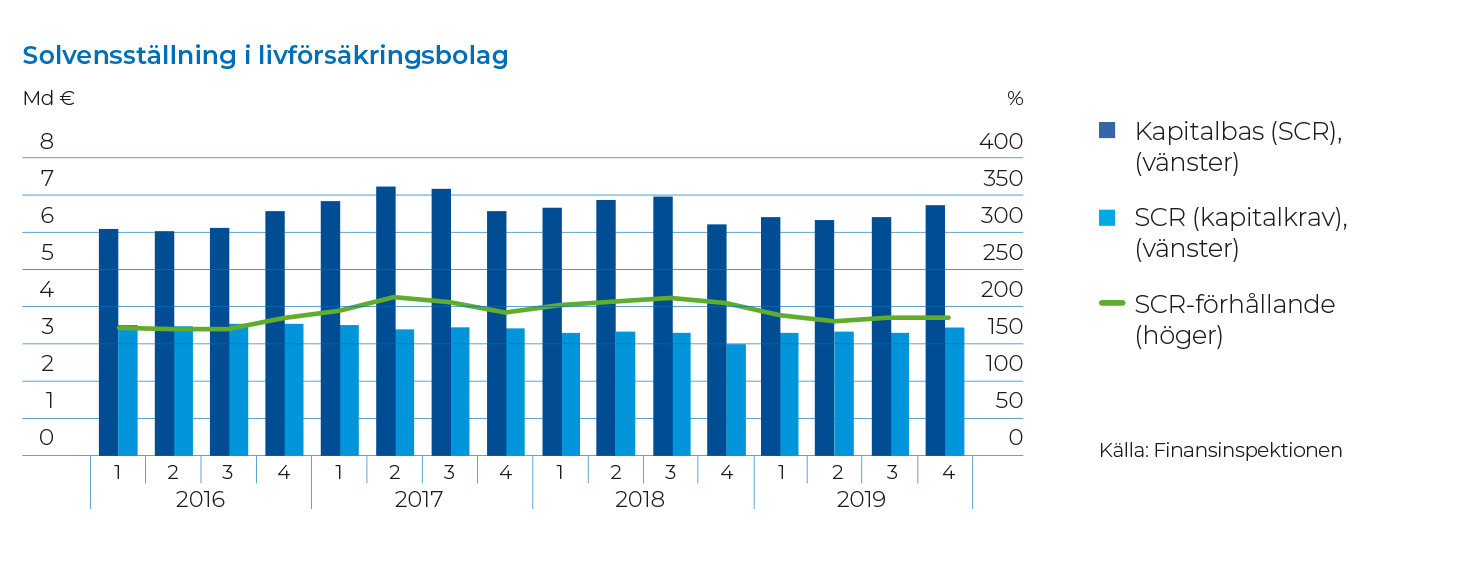 Livförsäkringssektorns solvensgrad sjönk under berättelseåret men låg trots detta på en bra nivå. Försvagningen berodde huvudsakligen på ökningen i solvenskapitalkravet. Ökningen av Nivå 2-kapitalbas lindrade dock den negativa effekten, och därmed var solvensgradens sänkning mindre än väntat.